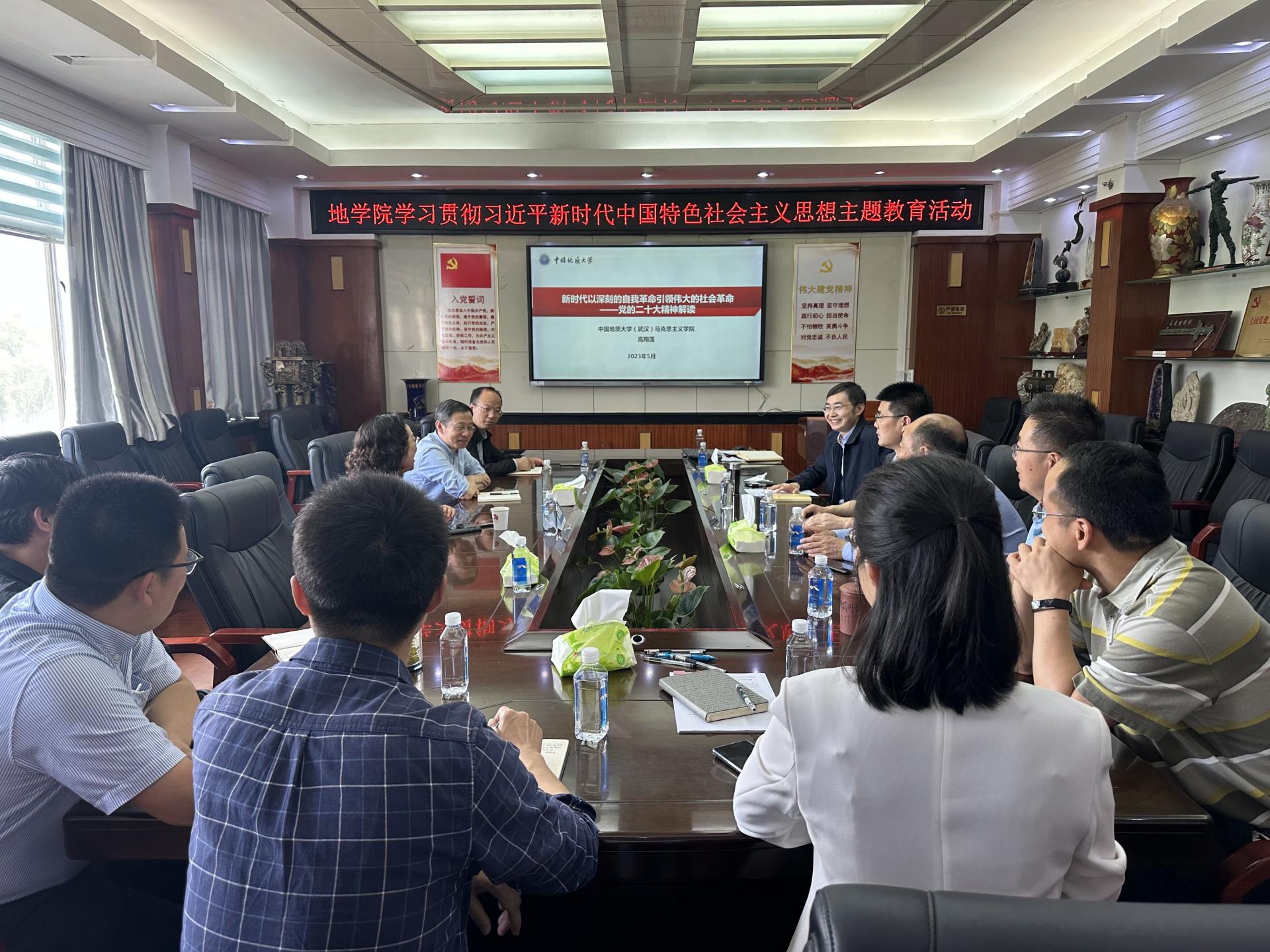 5月24日下午,av成人电影 组织开展学习贯彻习近平新时代中国特色社会主义思想主题教育活动,特邀马克思主义学院高翔莲教授讲授以《新时代以深刻的自我革命引领伟大的社会革命》为题的专题党课,对党的二十大精神进行解读,学院二三级班子成员参加党课学习。