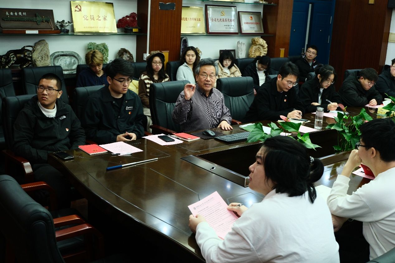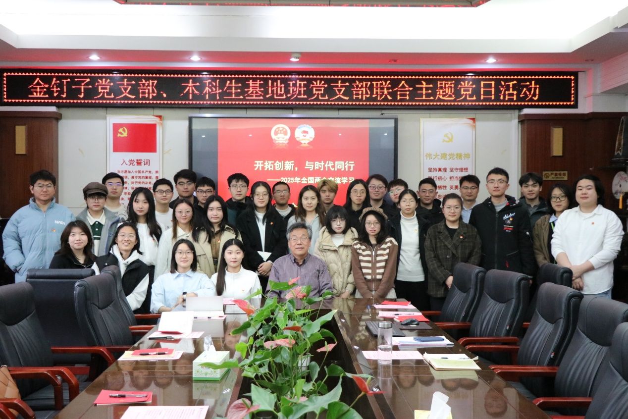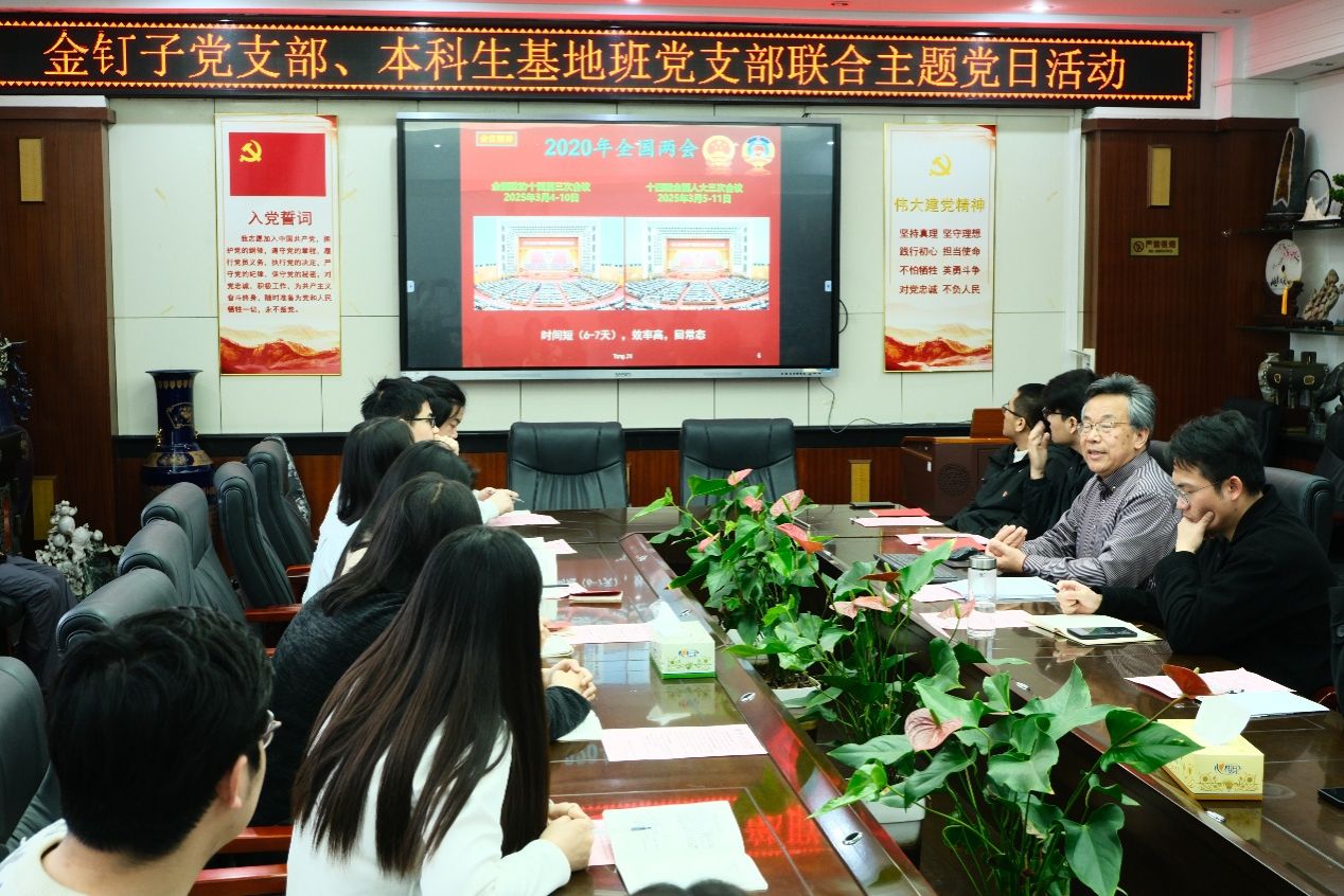 2025年3月28日,av成人电影 金钉子党支部、本科生基地班党支部在主楼308会议室联合举办3月主题党日活动。特邀第十三届、十四届全国政协委员童金南教授列席主题党日,主讲2025年全国两会精神。主题党日由金钉子党支部副书记施翌主持。