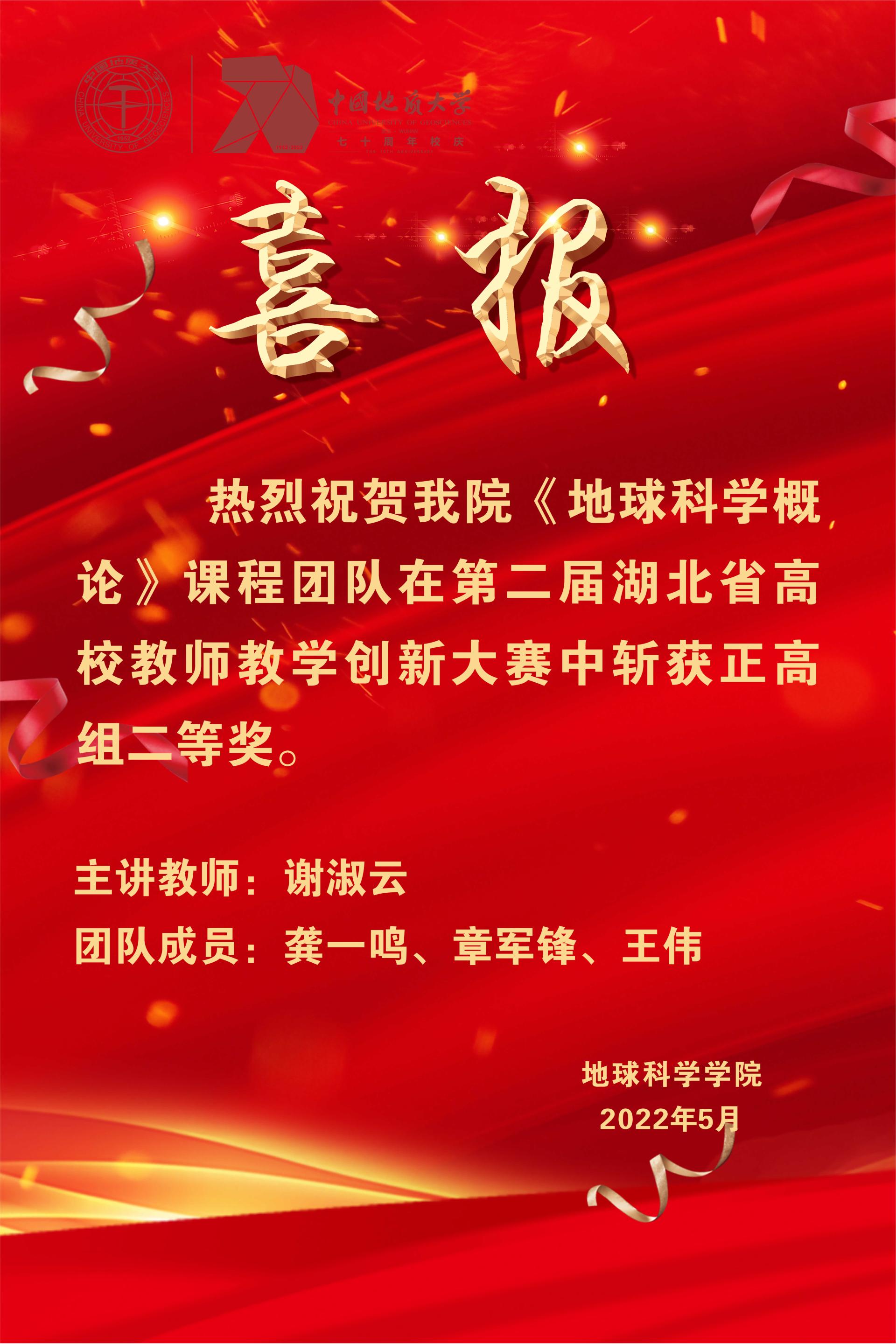av成人电影 《地球科学概论》课程团队在5月14-15日举行的“第二届湖北省高校教师教学创新大赛”中荣获正高组二等奖。