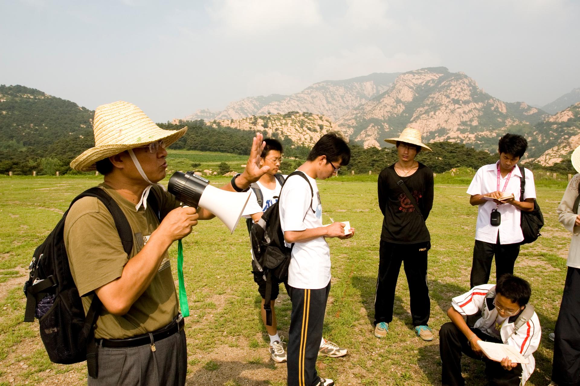 郑建平教授(左一)在野外为学生讲课
