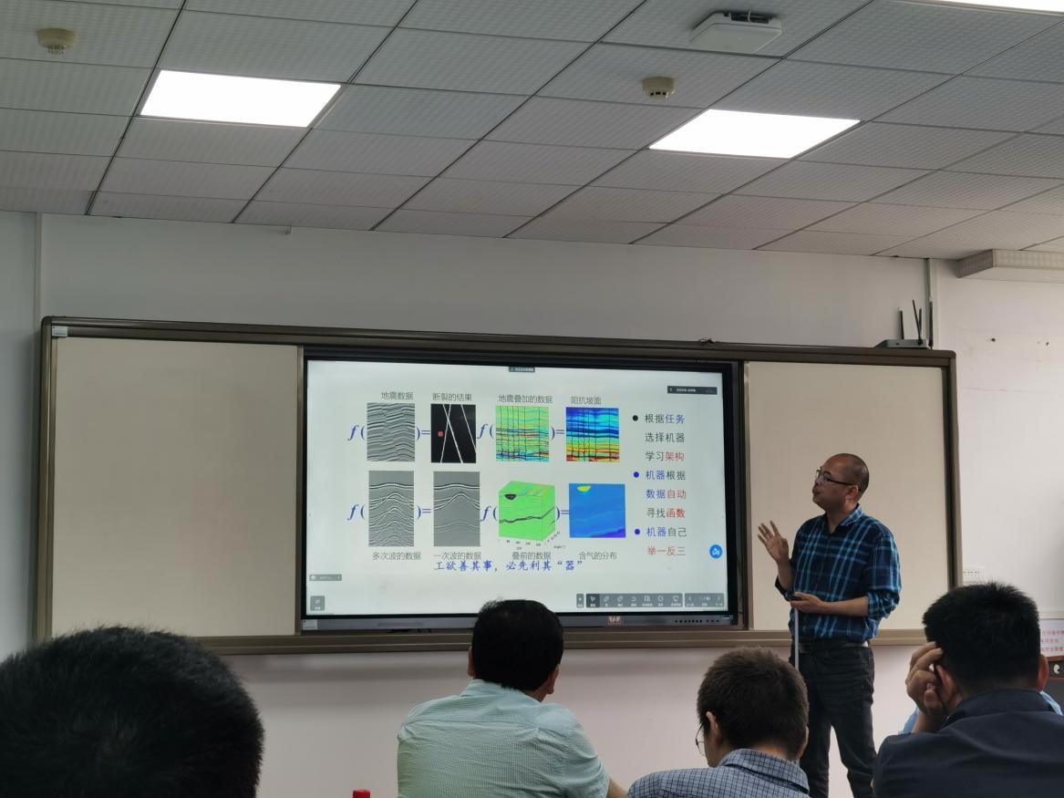易鸣教授主要研究方向为统计机器学习、数据挖掘与生命科学和地球科学交叉,他为av成人电影 师生做了“基于CNN和贝叶斯分类的地震散射波场反演成像方法”的报告,介绍了地震波传播的建模和用机器学习方法识别地震波的方法,以及地球物理方法在油气勘探和溶洞识别上的应用。