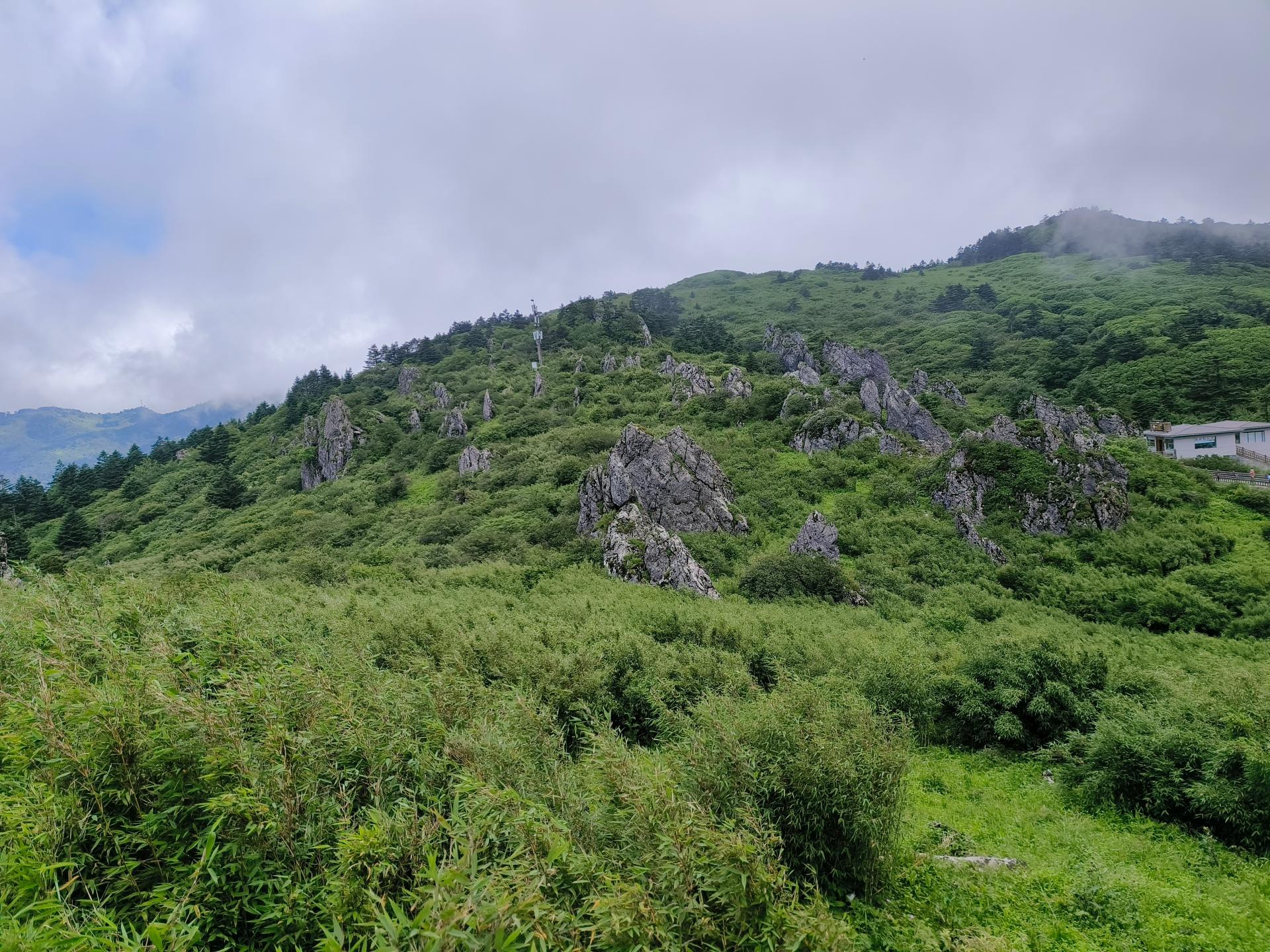 云雾散去,海拔两千多米的高山上的太阳可真毒,大家不得不披上防晒衣。空气确实清新,丝毫没有工业化的污染,蓝天,白云,总让人心头舒畅。
