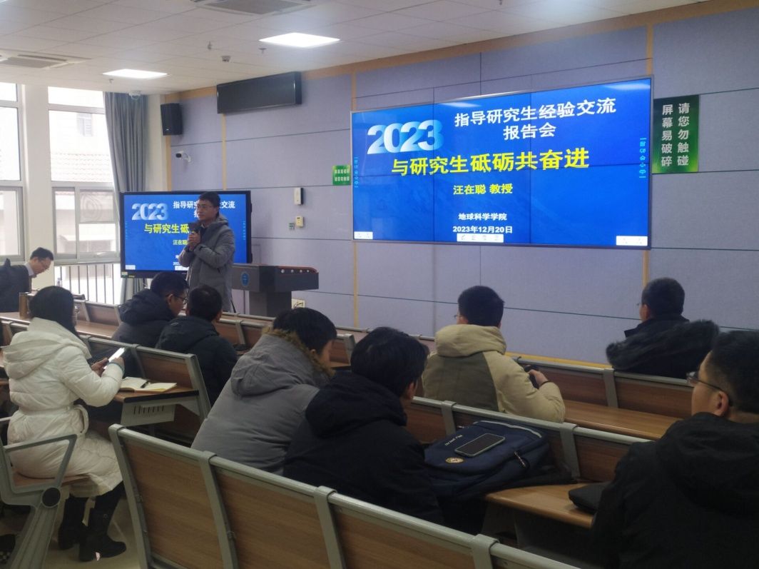 于2023年12月20日下午组织交流会,特邀请地学院国家高层次青年人才、第二届学校卓越青年研究生导师汪在聪教授,做指导研究生经验交流报告。地学院、资源学院、地空学院、地信学院、经管学院等13个学院的100多位青年研究生导师参与交流。
