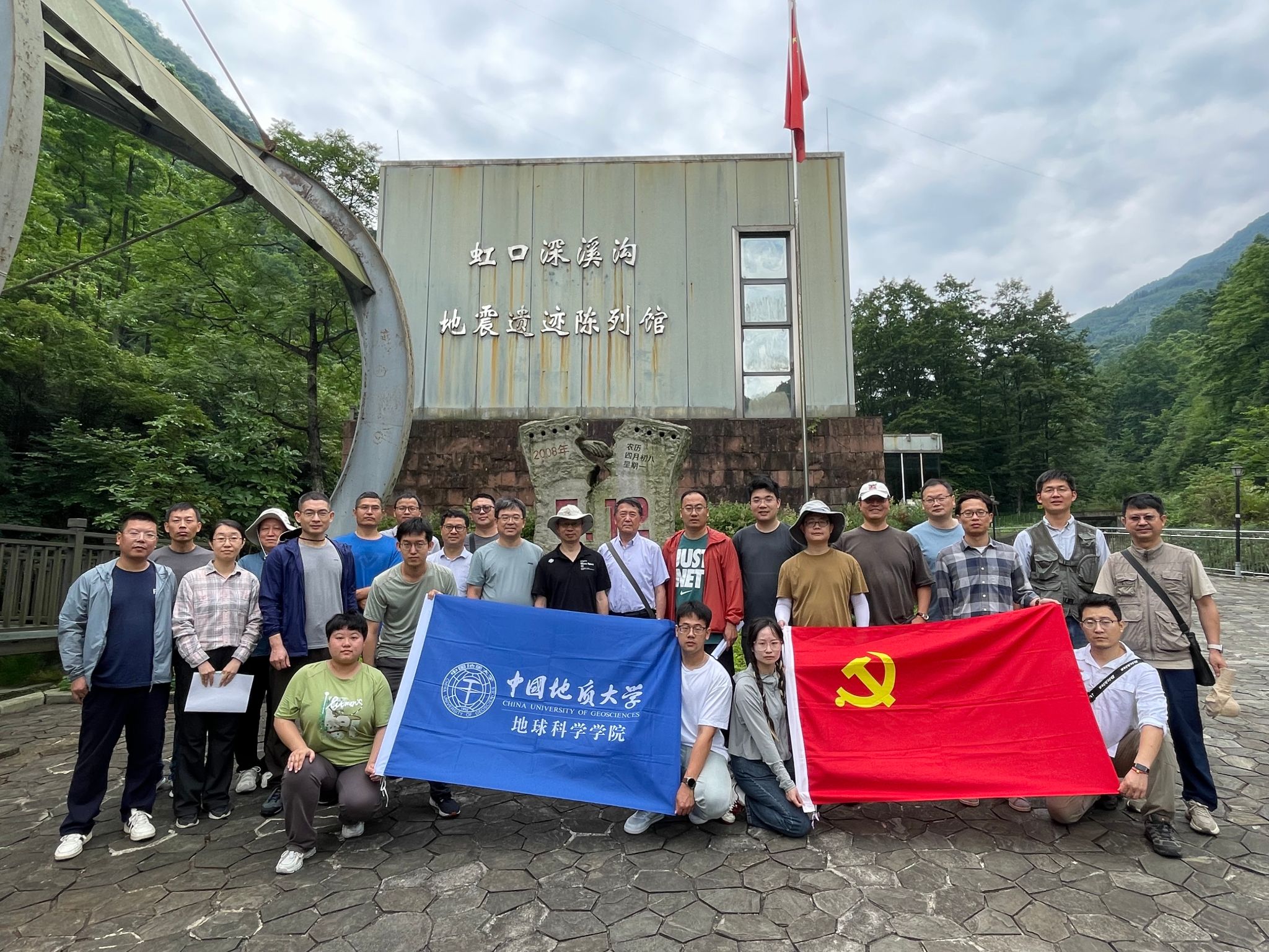 构造地质学与地球动力学系承担我校多个学院《构造地质学》等本科课程的教学工作,而“5·12汶川地震”则是每位老师在课堂上都会讲到的构造运动,但大部分老师却从未真正亲临汶川。为了能够让老师们更加深入的体会地震的破坏力,从而更好地讲好《构造地质学》这门课,构造系党支部特别安排了此次野外备课和爱国主义教育活动。在映秀,师生一行26人先后参观了虹口深溪沟地震遗迹、漩口中学遗址、震中纪念馆,并在家国情怀·宣誓广场接受党史党纪学习教育、重温入党誓词。
