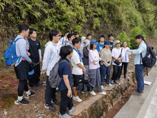图1 同学们在鹰扬关混杂岩带观察断层破碎带和岩性组合