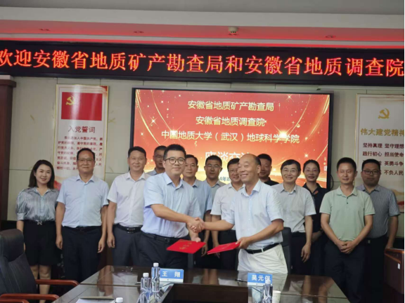 8月12日,安徽省地质矿产勘查局叶朝晖副局长、安徽省地质调查院王翔院长带队来学院座谈交流,av成人电影 蒋少涌校长助理、学院周刚书记、吴元保院长、朱宗敏副院长以及校科学发展院肖平副院长等参加座谈会。会上双方围绕进一步深化务实合作、推动协同创新、构建产学研联盟体系等展开交流讨论,并签署了产学研合作协议。