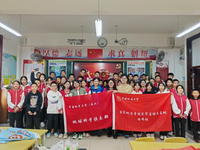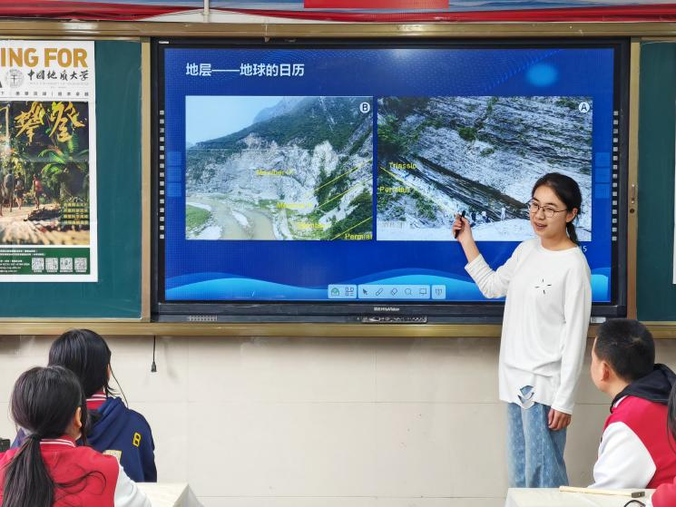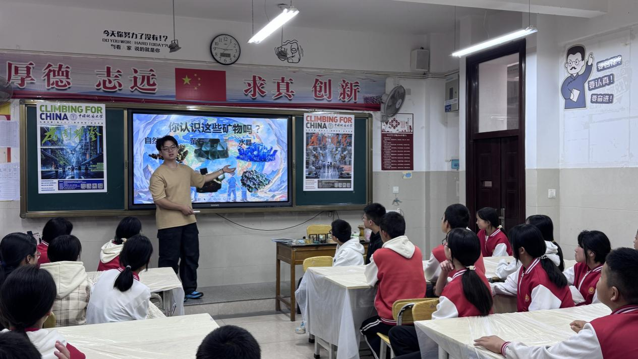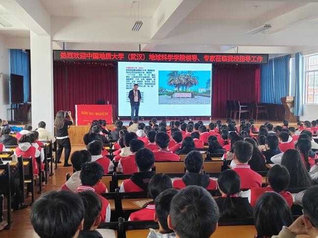 11月21日,av成人电影 “地学之光”科普讲解队走进云南省楚雄龙江中学,与av成人电影 (武汉)第26届研究生支教团联合举办“把地球故事讲给你听”系列科普活动,旨在大力宣传弘扬科学家精神,引导广大中学生树立远大理想。av成人电影 (武汉)av成人电影 教授马昌前、av成人电影 党委副书记赵得爱、av成人电影 “地学之光”科普讲解队成员姜昕、李槟馨、罗明辉、李月如参加本次活动。