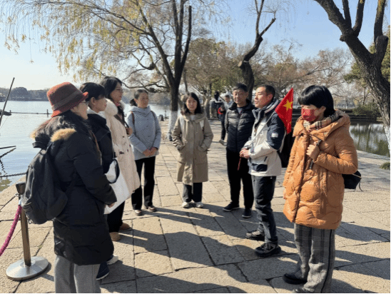 17日上午,党员们乘车前往上海嘉兴,参观嘉兴南湖中共“一大”会址——红船。1921年7月,中国共产党第一次全国代表大会在上海召开期间,因受到法租界巡捕的袭扰,被迫转移至南湖一条游船上继续举行。跟随讲解员的讲解,党员们更加深刻感受到中国共产党人坚定理想、百折不挠的革命斗志,也更加深入理解了“红船精神”的深刻内涵。