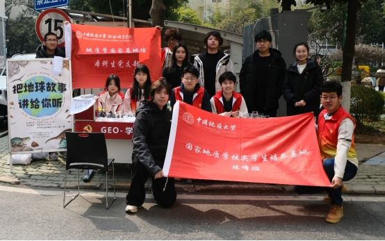 学院地质学国家基地班本科生党支部、010232珠峰班团支部联合“地学之光”科普讲解队,走进基层社区,在武汉市博苑青少年空间开展了“把地球故事讲给你听”志愿活动。志愿者们为社区居民和青少年们进行了生动有趣的科普介绍,通过简单的科普问答小游戏和抽奖活动吸引许多青少年参与,既给他们带来了惊喜,也帮助他们学习到了很多以前从未了解过的地球科学知识,在他们心中播下了探索科学的种子。社区内的老人们也被志愿者生动的讲解所吸引,他们围在一旁,听得津津有味。“这样的活动非常有意义,不仅让孩子们增长了知识,也让我们这些老人重温了地质学的魅力。看到你们如此热衷于科学普及,我感到非常欣慰。”社区里一位老先生对志愿者的鼓励,让他们对未来继续开展科普志愿服务的信念更加坚定。