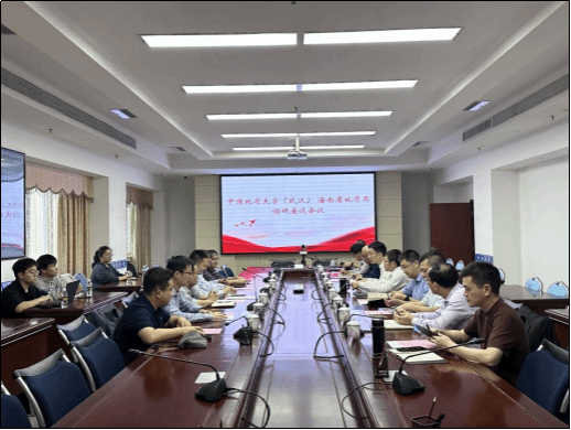 与会人员观看了海南省地质局宣传片,李闫华副局长对学院的来访表示热烈欢迎,并详细介绍了海南省地质局的发展历史、人员队伍、产业结构和科研方向,期待通过产学研合作,为新一轮找矿突破战略行动和地方经济发展提供更强科技与人才支撑的期望。佘振兵副院长介绍了学院的整体情况、科研优势与特色。他表示,希望以此次交流为契机,加强双方在在人才培养、科技创新等领域的合作,实现优势互补、共同发展。
