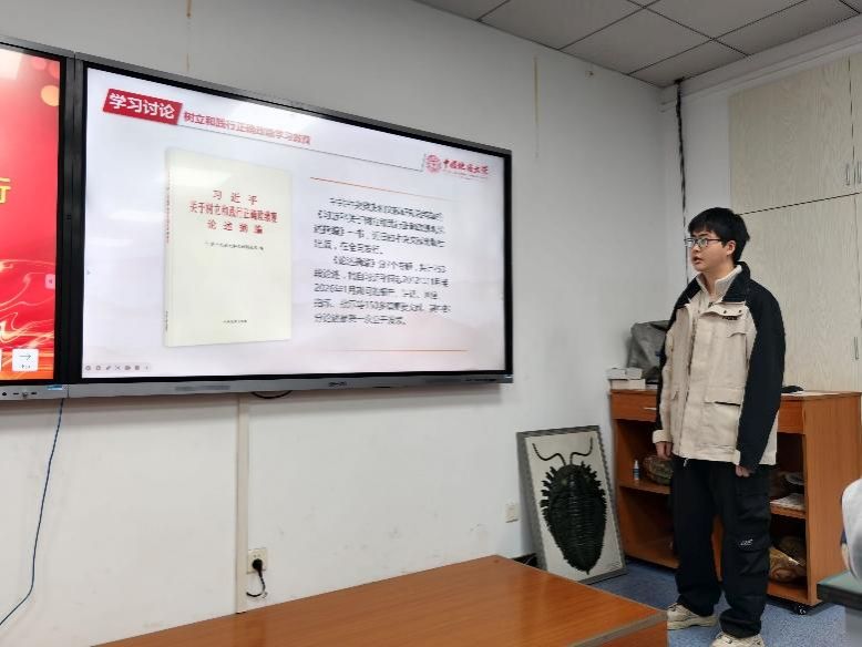 为深入学习贯彻全国两会精神,扎实开展树立和践行正确政绩观学习教育,激励广大党员在新时代强国建设中担当作为,2026326日下午,地球与行星科学学院地球生物学系党支部与金钉子党支部在主楼604教室联合举办3月主题党日活动。活动特邀第十三届、十四届全国政协委员童金南教授出席并解读2026年全国两会精神,01G241班本科生列席会议。主题党日由地球生物学系党支部书记叶琴同志主持。